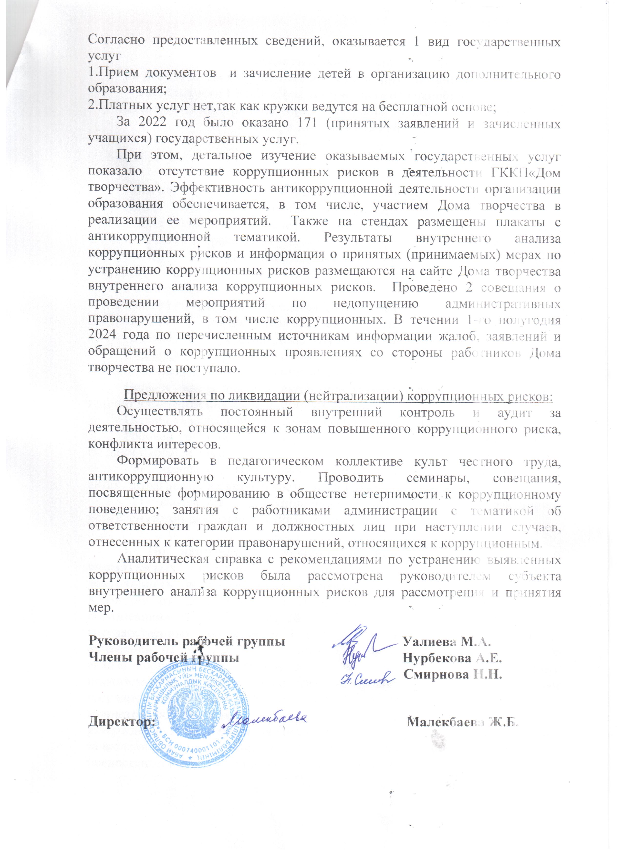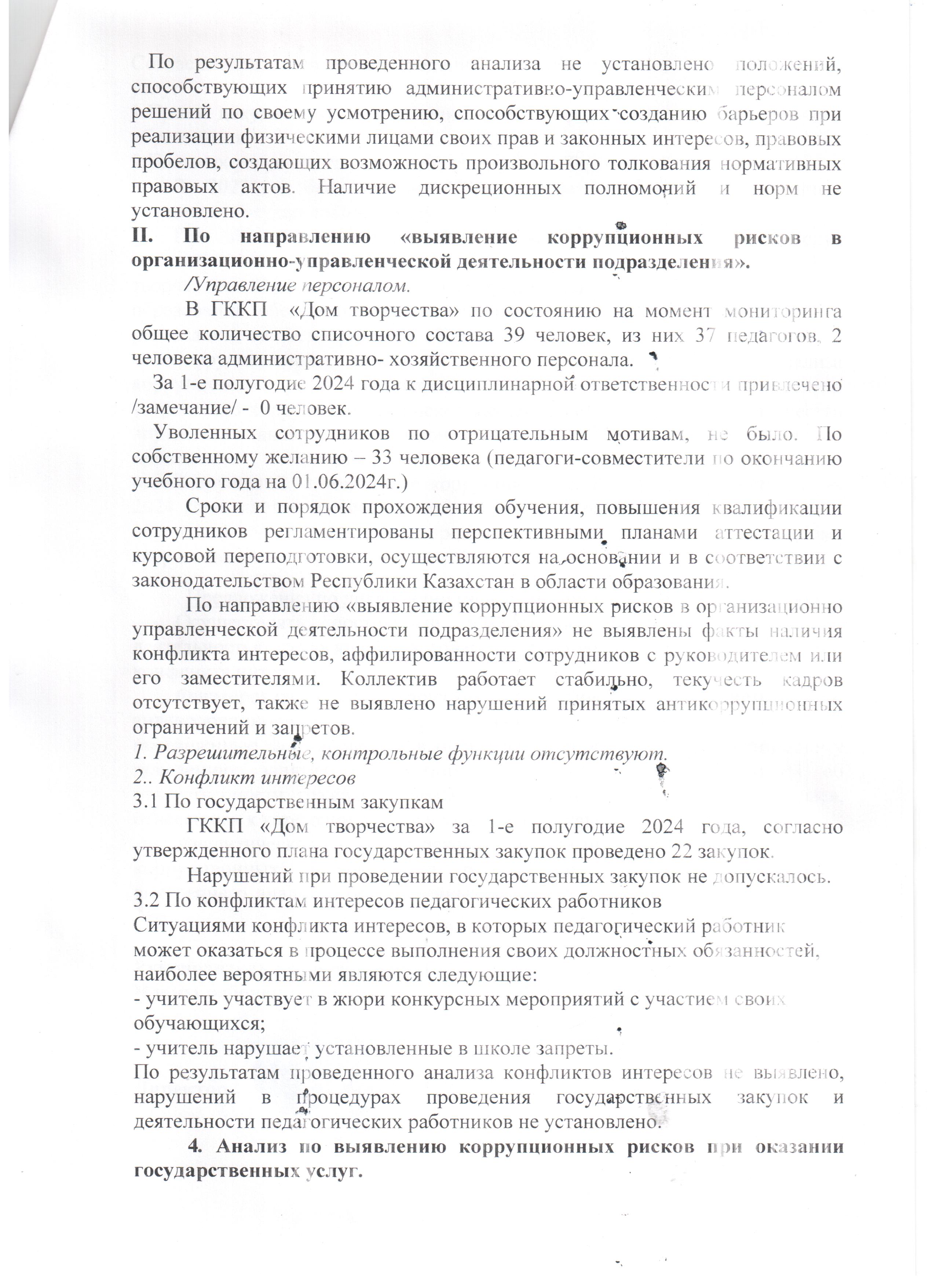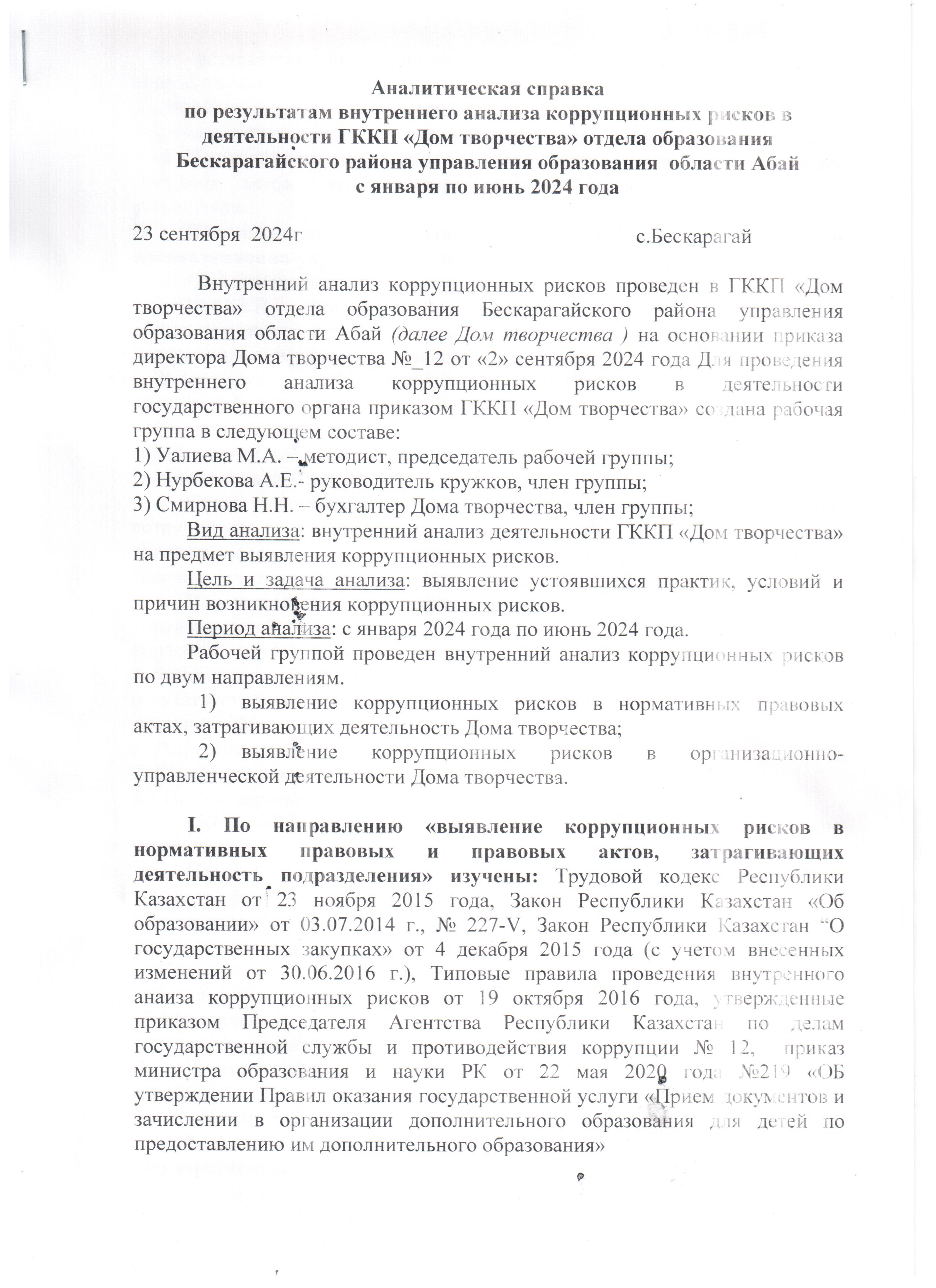 Аналитическая справка о внутреннем анализе коррупционных рисков за 1-е полугодие 2024 года